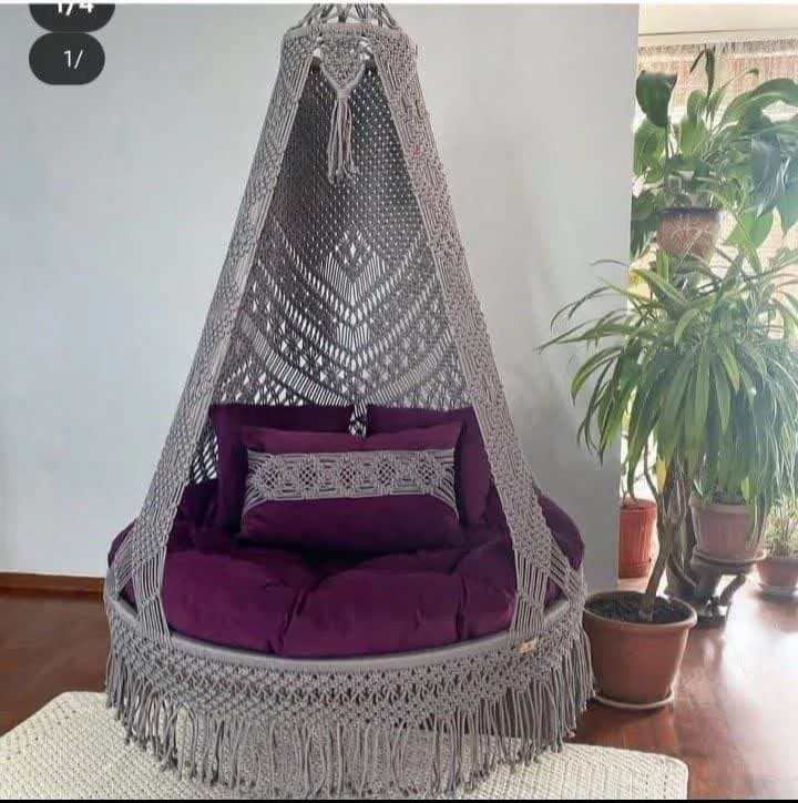 سلام مشتری عزیز تاب ریلکسی دو نفره عربی مکرومه که مشاهده میفرمایید ، مکرومه آن از بهترین نخ والیاف بافته شده است. نخ پلی استر مغزدار شرکت جهان آسا که برخلاف برخی از کارهای بازاری مقاومت بالایی جهت تحمل وزن دارد و تا 180 کیلوگرم را تحمل میکند بدون اینکه به مرور زمان از شکل و ظاهر اولیه خود بیفتد. ارتفاع تاب حدود 220 سانتی متر و قطر کف تاب 130 سانتی متر است. رنگ نخ و تشک تاب به سلیقه شما بر اساس کالیته موجود در اکهی بافته می شود. قیمت تعیین شده در مقایسه با هزینه متریال و تولید با حداقل سود ممکن است به این امید که شما مشتریان عزیز بتوانید با خیالی راحت در منزل خود تاب زیبا مکرومه بافی ما را داشته باشید همچنین مشتریانی که خرید عمده دارند و مشتریان سراسر کشور خریدی به صرفه داشته باشند خدا را شاکر هستیم که بعد سالها فعالیت در تولید انواع تاب ریلکسی رضایت مشتریان را داریم و پیامهایشان موجب دلگرمی مان است بعد از خرید تضمین و پشتیبانی تیم تولید همراه شما است برای سفارش و مشاوره با پشتیبانی سایت تماس بگیرید