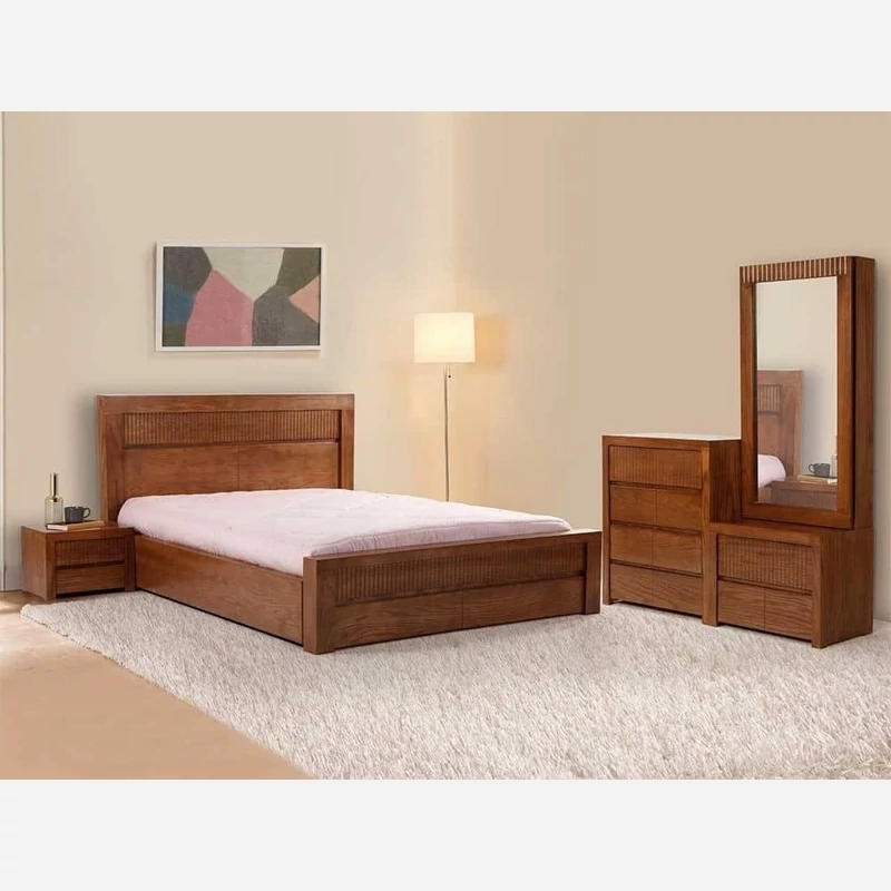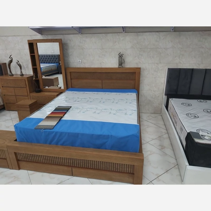 سرویس خواب روما تخت دو نفره 160 در 2 متر همراه با آینه کنسول/ دراور/ پاتختی/ عسلی امدی اف روکش چوب ملچ قیمت کارگاهی