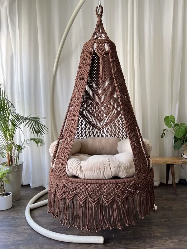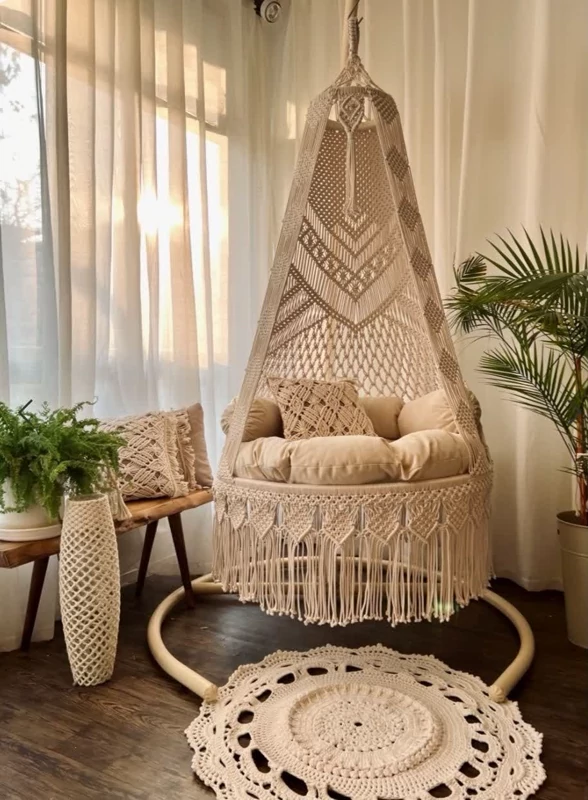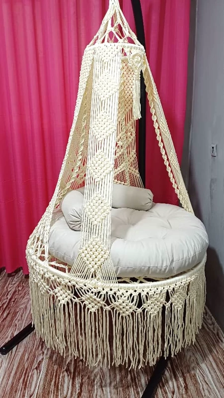 دوستان کیفیت تاب های ما حتی در عکسها مشخص است.تاب مکرومه عربی از صفر تا صد آن، از رنگ میله تا رنگ بافت وتشک همگی بر اساس خواست و سلیقه شما ساخته میشود